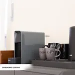 I badrummet finns även en bidé, en separat toalett och en dusch. Det finns också hårtorkar.